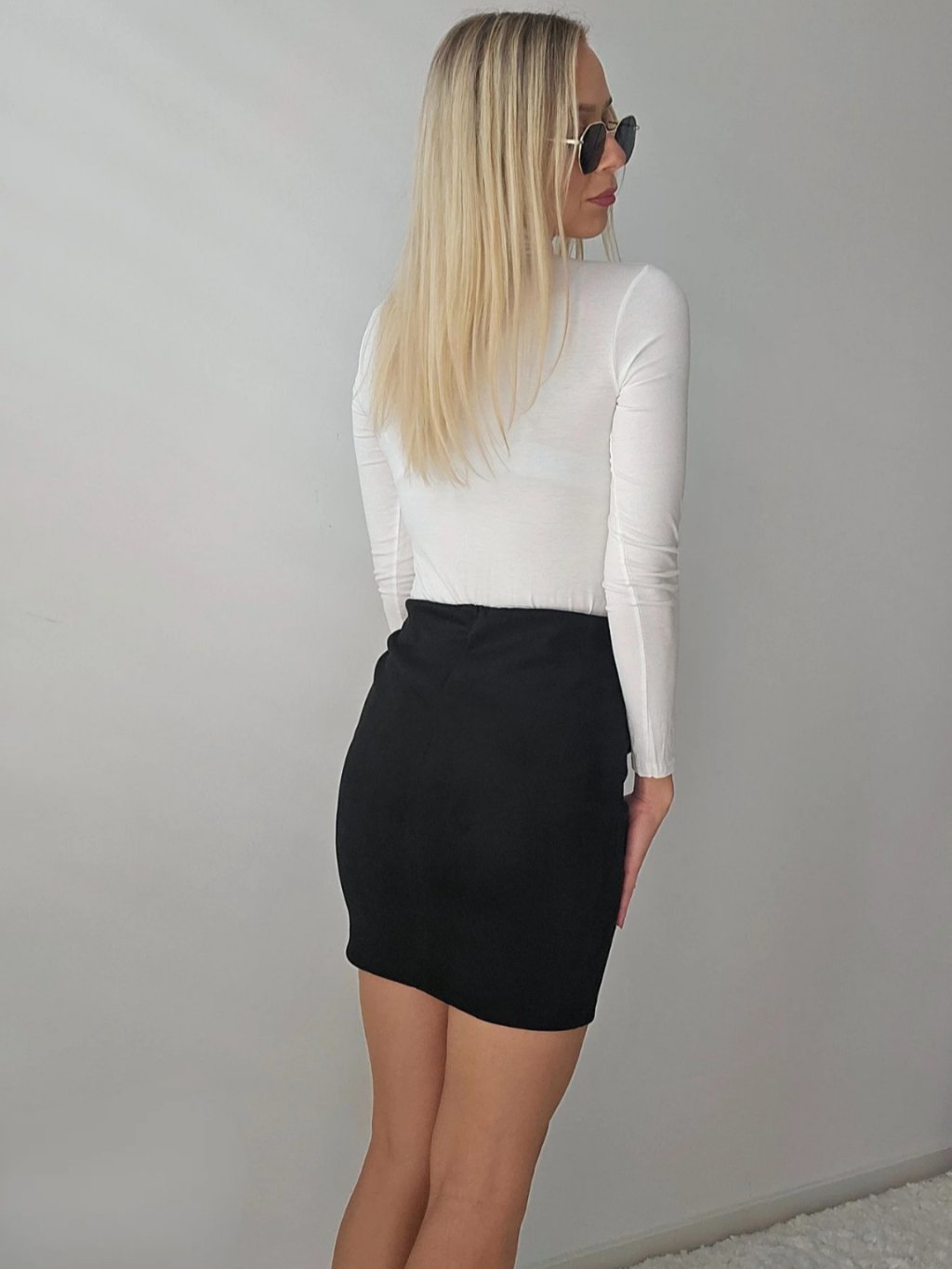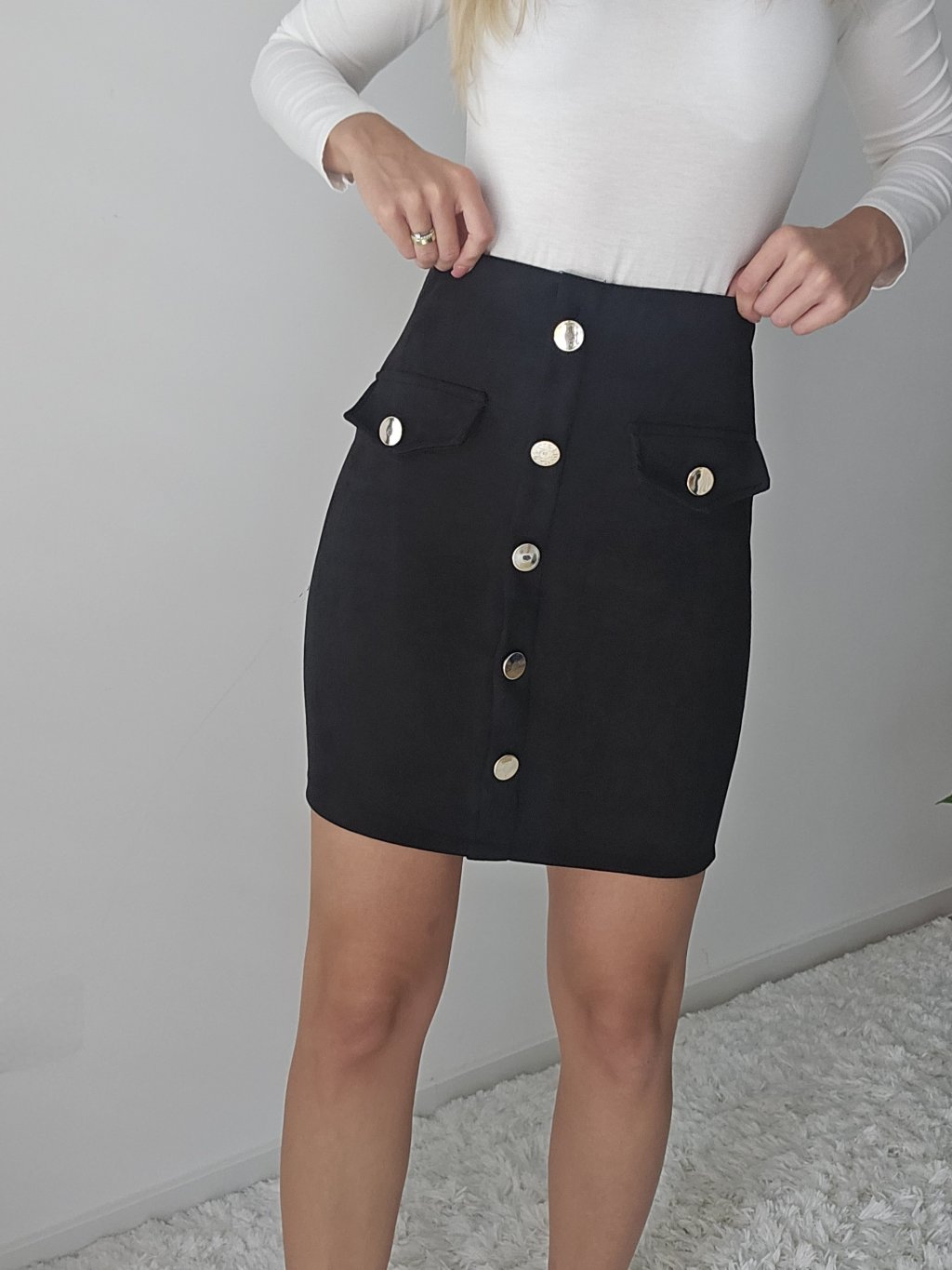 Čierna semišová sukňa so zlatými gombíkmi